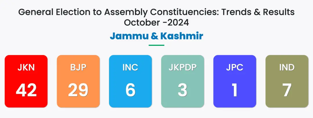 最終,查謨和克什米爾全國大會黨贏得42個席位,印人黨贏得29個席位,國大黨贏得6個席位,查謨和克什米爾人民民主黨贏得3個席位,查謨和克什米爾人民大會黨、印度共產黨和平民黨各贏得1個席位,獨立候選人贏得7個席位。未來,查謨和克什米爾全國大會黨副主席奧馬爾·阿卜杜拉將出任首席部長。