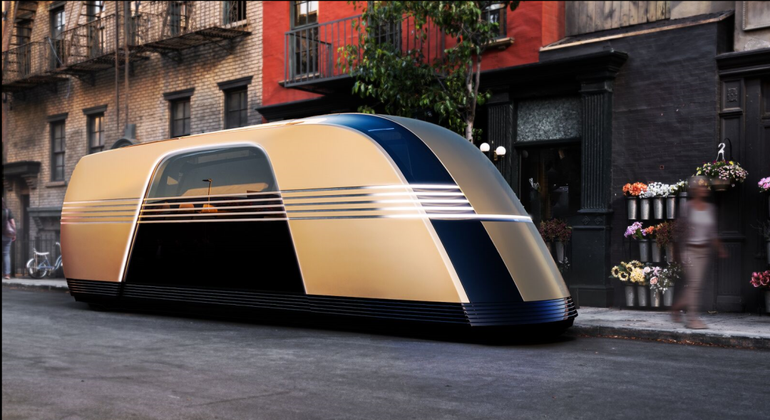 咱就是説這個造型啊,多少是有些過於科幻了是吧。前面後面都沒有車窗,也看不見它的輪子在哪。要不是老馬提前告訴我了這是一台車,我都以為這是個能移動的公交車站。