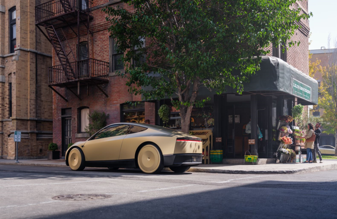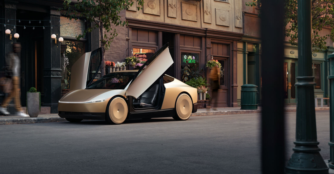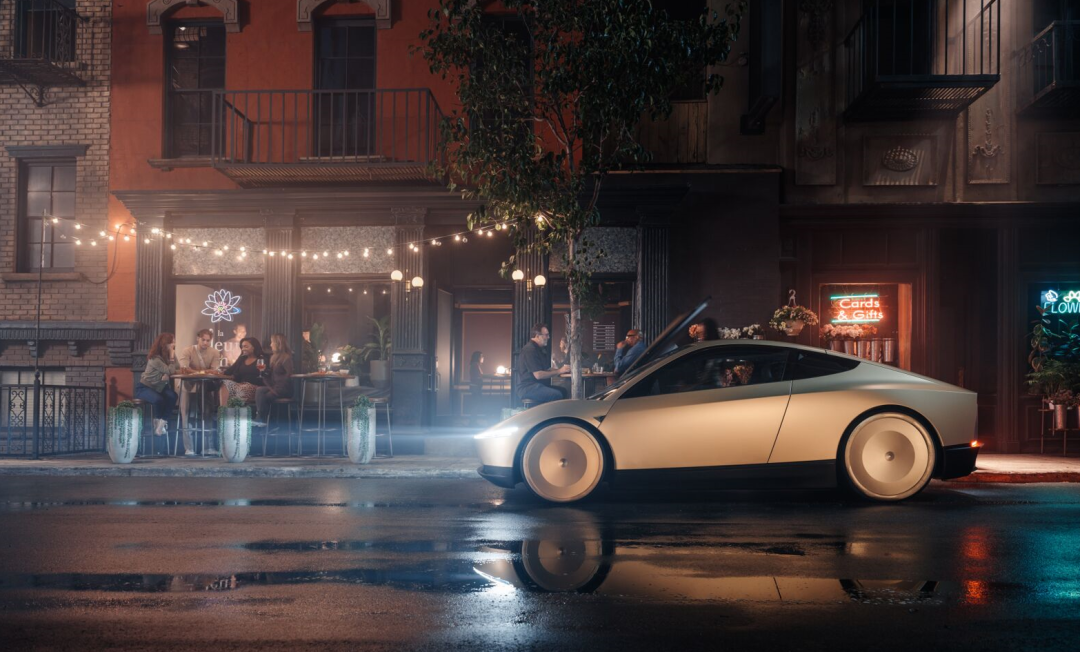 活動一開始,馬斯克就坐着一台看着非常帥氣的轎車出場了。而這台車呢就是今天活動最重要的主角,也是外界一直在猜測的特斯拉無人出租車:Cybercab ( 直譯賽博出租車 )。