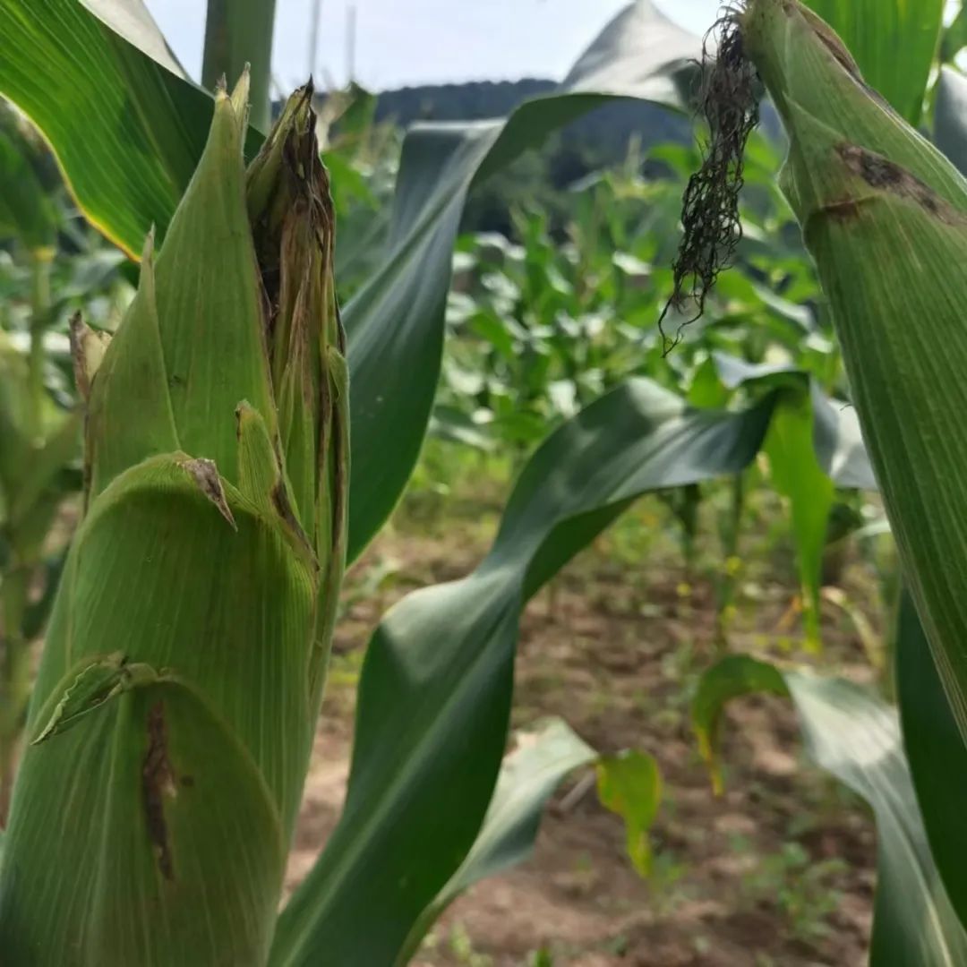 我們沒有使用化肥和化學農藥的玉米地讓我們多費了很多力氣,但長勢一般 ©紅後