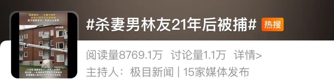 這兩天有個**#殺妻男林友21年後被捕#**的熱搜,大家都刷到嗎?