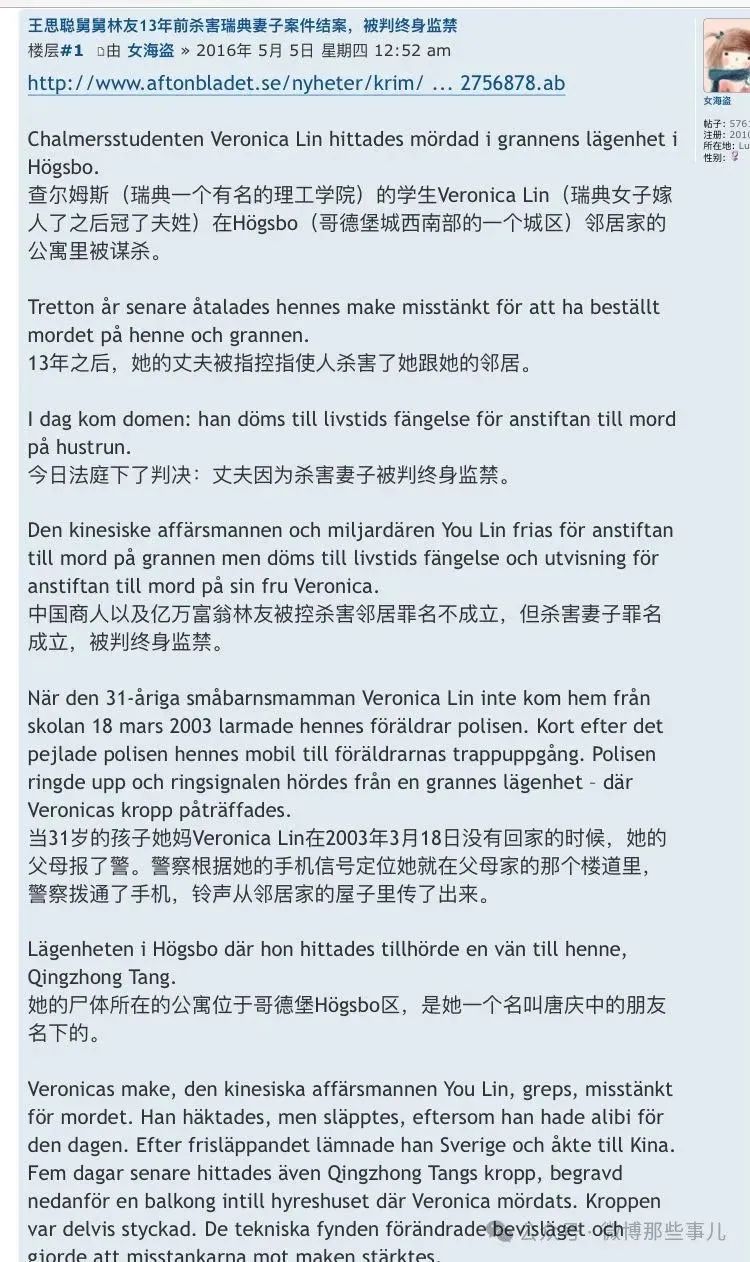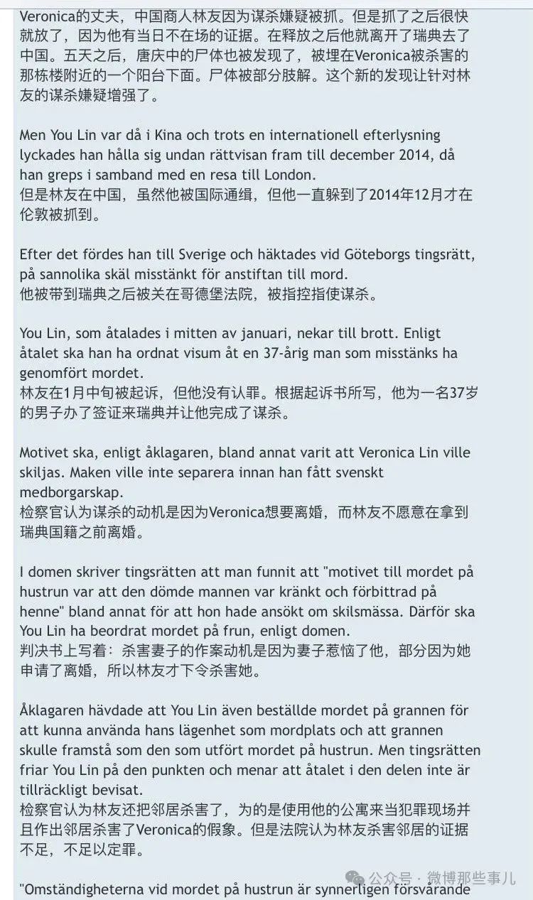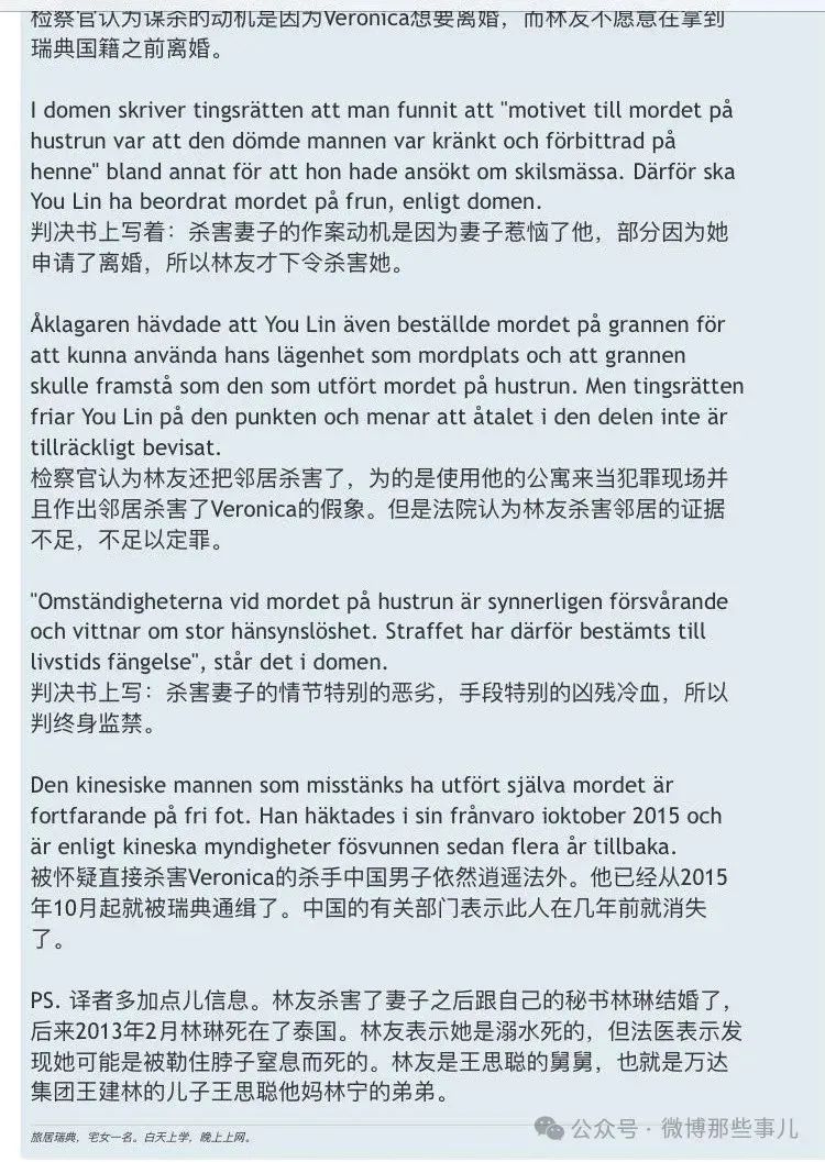 這案子非常有名的,直到2021年,瑞典還推出了案件的紀錄片《Veronica與中國富豪》。