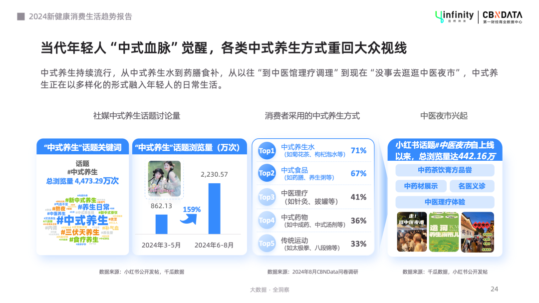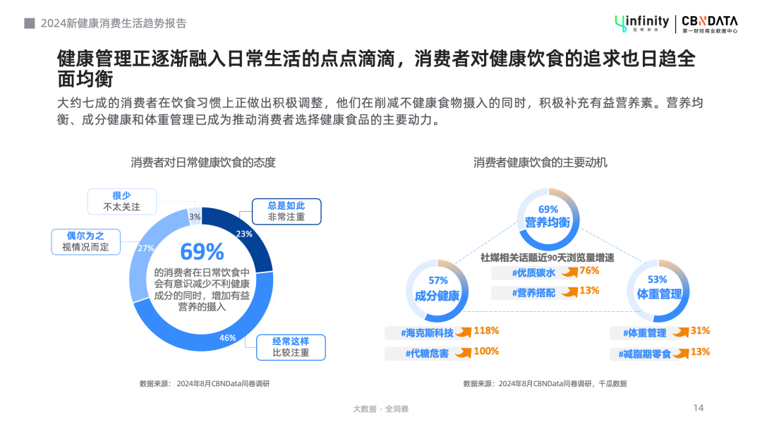 落到具體的消費場景之上,無論是日常飲食的均衡調整,還是運動方式的探索轉變,亦或是中式養生與現代科技的有機結合,都反映出了消費者力求在快節奏的生活中,實現健康與生活的和諧統一。