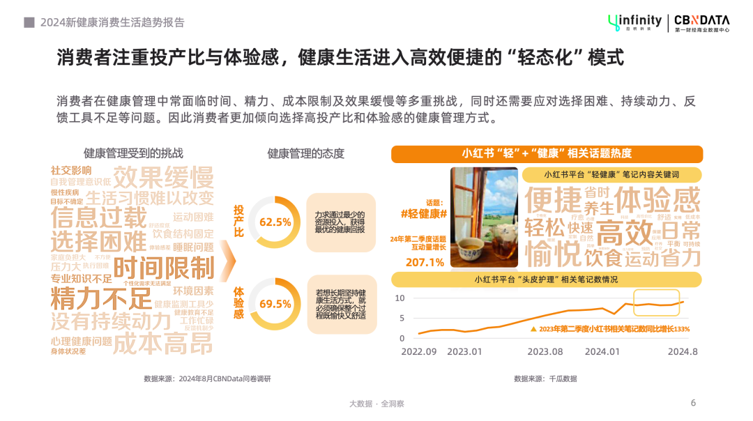 然而快節奏的現代生活並沒有留給消費者過多的健康選擇,如何在更短的時間內收穫更大的健康回報成為供給側的新命題。在此背景下,CBNData發佈《2024新健康消費生活趨勢報告》,圍繞健康消費新熱潮、新輕年人羣描摹以及健康消費新趨勢,全方位探討健康產業發展方向。