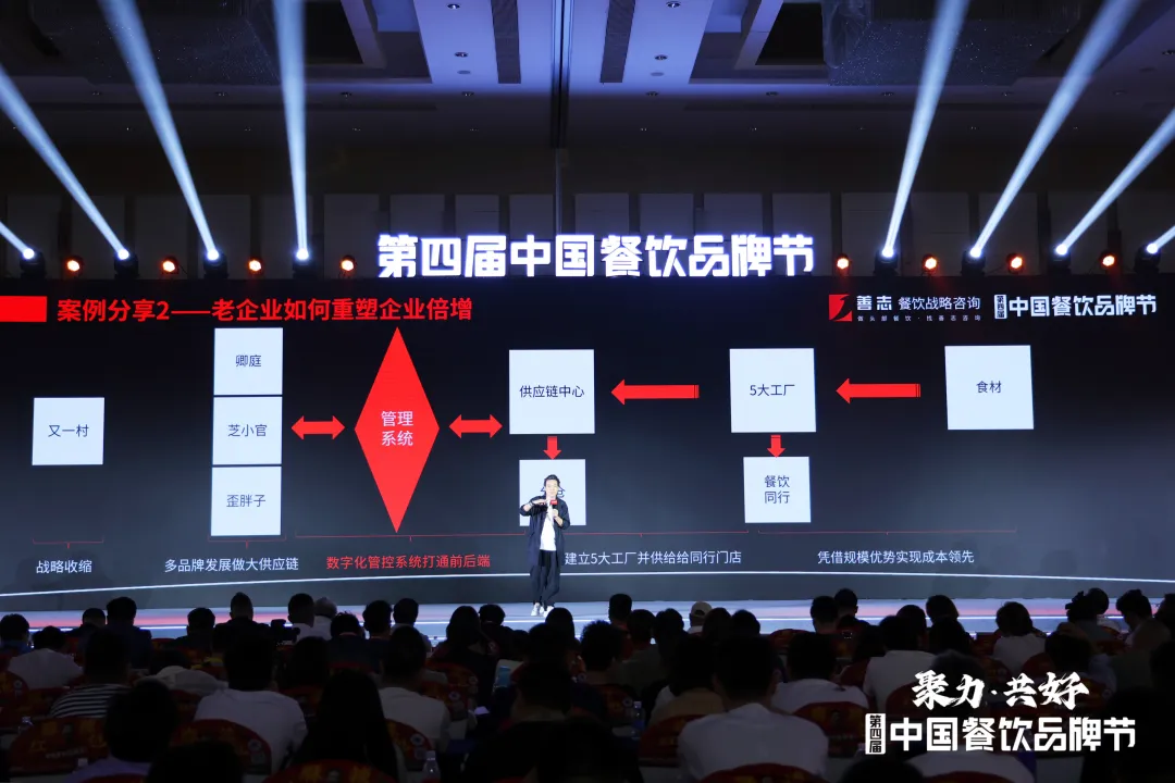 這就是苗小壇的產業佈局,終端思考怎麼讓消費者吃得爽,且門店可複製,中游做好全產業鏈的管控,再通過整合上游做成大產業。苗小壇品牌從0到600+門店,企業從0到供應鏈工廠、六大子公司和五個分倉, 實現了新品牌倍增的目標。