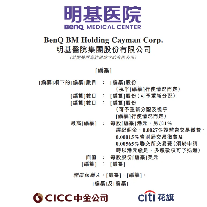 據港交所近日披露,明基醫院集團股份有限公司向港交所主板提交上市申請,中金公司、花旗擔任聯席保薦人。