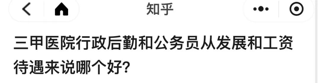例如,在某知識提問平台,有人向網友發文詢問:三甲醫院行政後勤和公務員,從發展和工資待遇來説哪個好?