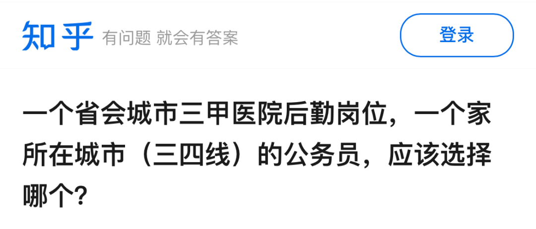 還有人提問:一個省會城市三甲醫院後勤崗位,一個家所在城市(三四線)的公務員,應該選擇哪個?