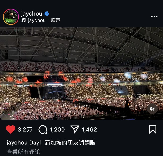 周杰倫的演唱會,如同劃破夜空的流星,驅逐了繁雜的現實生活,讓每一位觀眾掙脱壓力的桎梏,盡情釋放自己。第一場演唱會結束後,周董發佈的“Day 1 新加坡的朋友嗨翻啦”帖子,也透露出他與歌迷共同享受這場音樂盛宴的喜悦,這份歡樂與甜蜜讓粉絲們大呼感動。讓我們共同期待周董接下來的2場演出,和10月26日馬來西亞站的精彩表現。