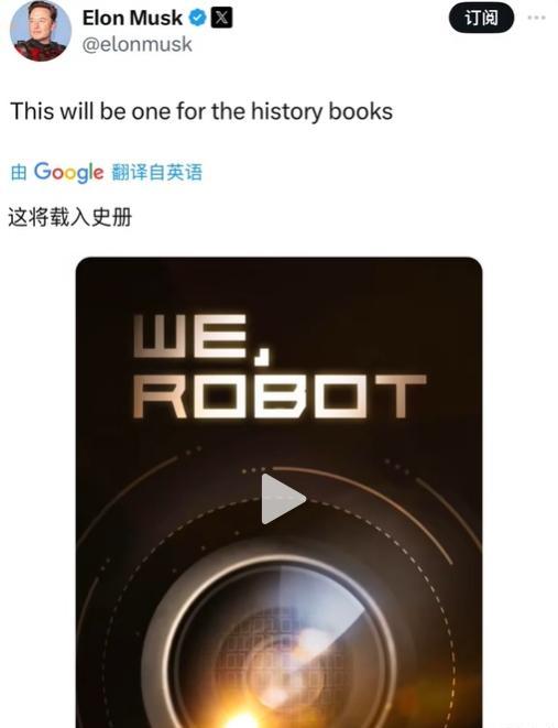 在發佈會之前,馬斯克就吊住了大家的胃口。他在社交渠道上發佈了Robotaxi海報,並稱“這將載入史冊”。在他看來,這將是Model 3發佈會之後,特斯拉最重要的一次發佈會。