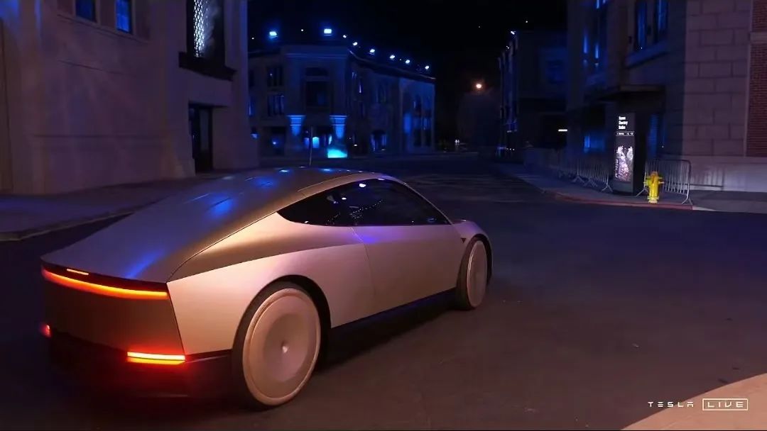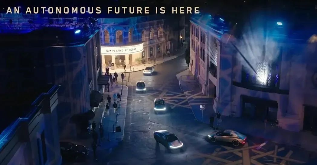 從發佈會的視頻中可以看到,顛覆了傳統汽車設計的CyberCab行駛在華納兄弟製片廠的影視城中,幾乎是將科幻小説帶進了現實。其實,這也是為什麼特斯拉要將發佈會選定在這個地方,因為最適合秀出無人駕駛的科技感。