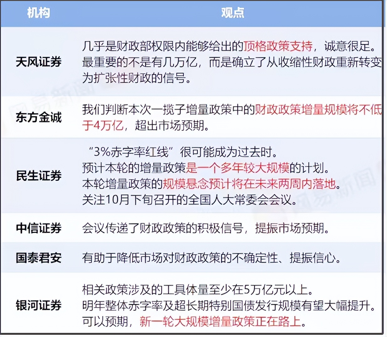 在這次會議之後,國內機構給出的增量規模預期,有説4萬億,也有説5萬億,也有説是“頂格政策支持”。