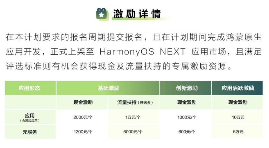 於近日,華為最新公佈鴻蒙原生應用開發者激勵計劃,開發者報名參與該計劃後,滿足激勵條件最高可獲得10萬元現金獎勵和相應的流量扶持。