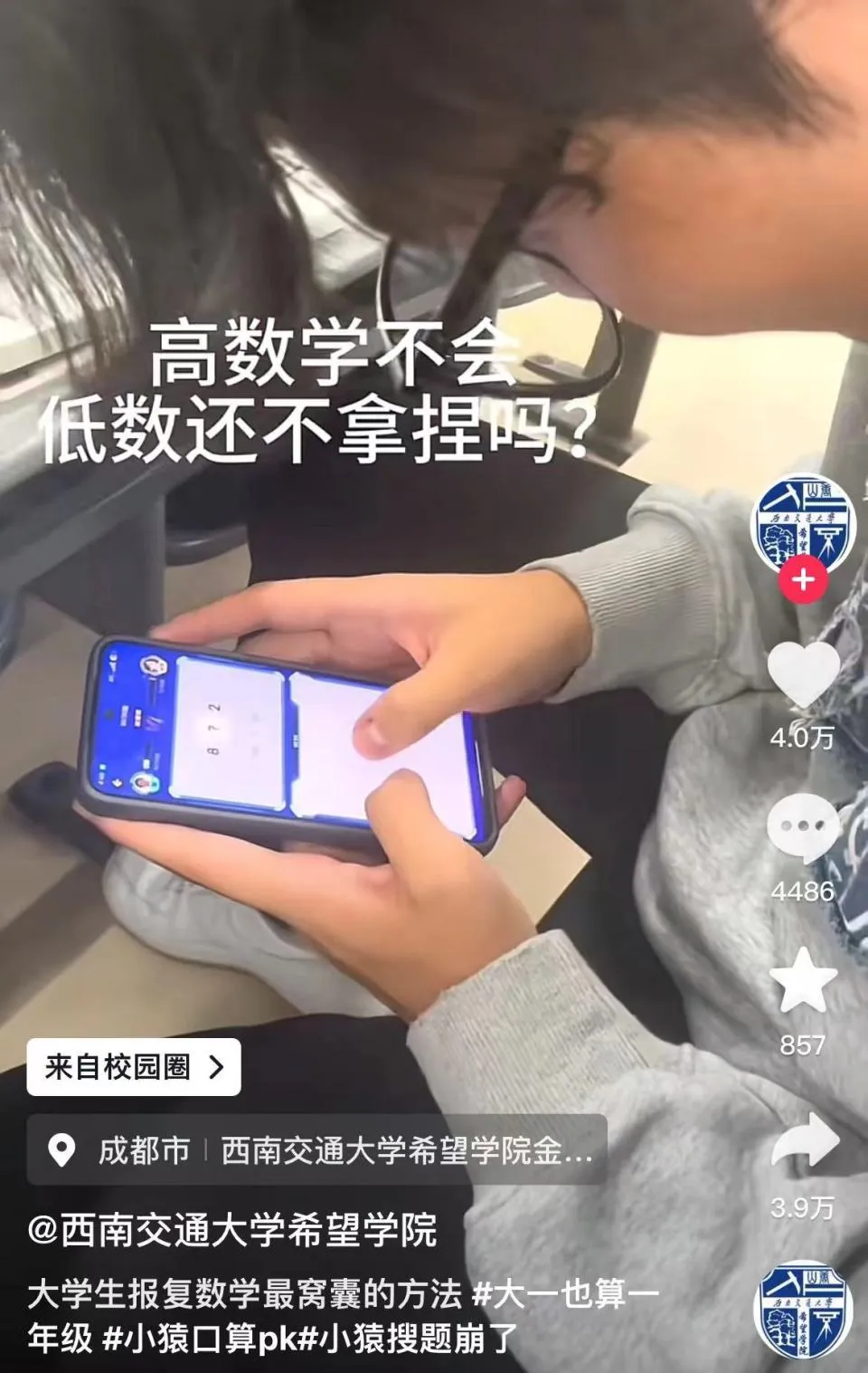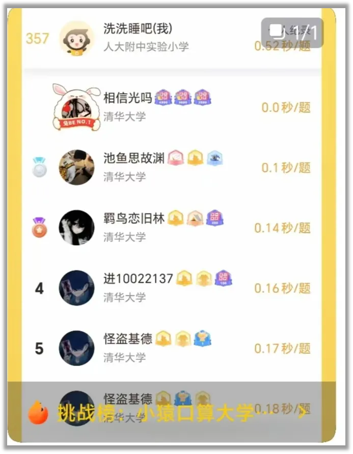 一羣詭計多端的大學生髮現了這個小猿口算,紛紛湧進來,體驗高端玩家闖入新手村的快感。