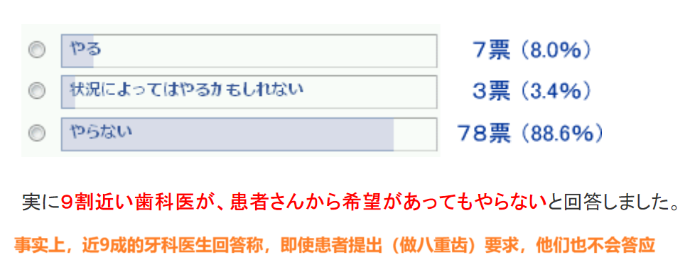 其實在假八重齒潮流剛剛興起的時候,日本的牙醫論壇就搞過投票,結果有88%的從業者表示,搞這玩意完全違背了健康理念,是畸形的潮流,已經觸碰底線了。