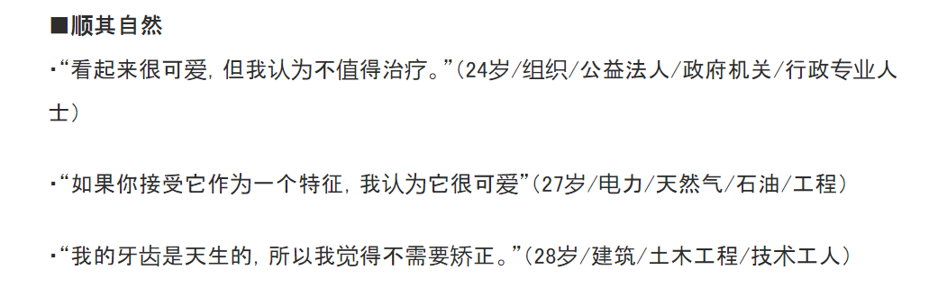 然而,你在日本極少能看到誰戴牙套、牙箍,按照日本醫療機構的統計,有過牙齒矯正經歷的人,在男性中只佔6%,在女性中只佔8%。對牙齒矯正抱有正面態度的日本人,也只有37%,在美國,這一比例為76%,而我們中國是63%。