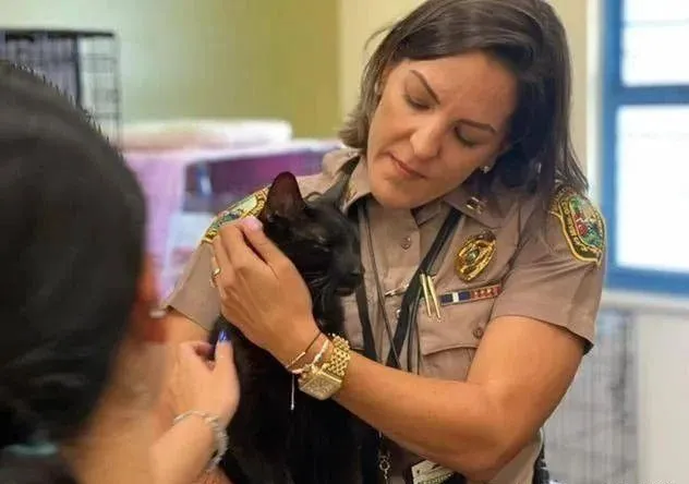 邁阿密警方在現場救出了一隻貓,這隻貓還被帶到警察局供記者們拍照。