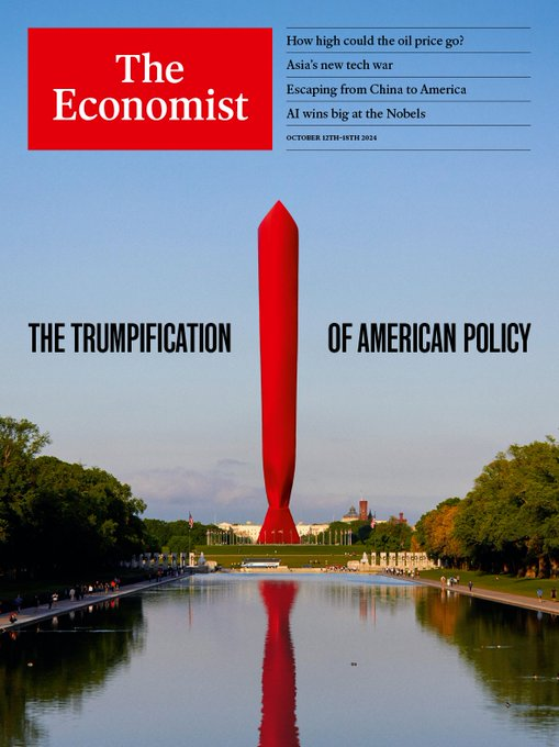 距離美國大選已不足1個月。根據路透社和益普索10月7日公佈的民調,哈里斯以46%的支持率領先特朗普的43%,領先優勢有所縮小,如果不計3個百分點的誤差,兩人基本上勢均力敵。英國《經濟學人》最新一期雜誌以“華府倒置的紅色領帶”為封面,開始分析特朗普三次參選對美國國內政策和外交政策的持久影響。通過對比分析,該刊認為,特朗普已為這場大選及之後的美國政策設定了“條件”,哈里斯為了競選總統,也在向特朗普的“玩法”靠攏。無論兩人誰在11月5日勝出,特朗普都已定義了美國兩黨的政策議程,進而體現美國內政外交的“特朗普化”。以下是封面文章的主要內容。