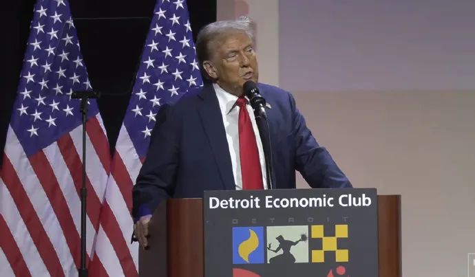 ▲10月10日,特朗普在美國底特律經濟俱樂部演講時聲稱,他若當選,最高或將徵收1000%關税,以阻止中國自墨西哥向美國出口汽車。