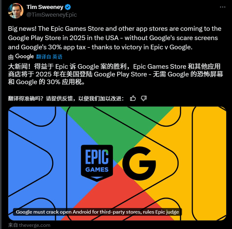 Epic 在那邊大開香檳,谷歌在這邊因為被拆分,搞得火燒屁股。