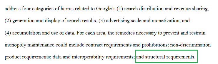 與此同時,還有一條狠的,**對谷歌進行結構性調整。**其實,也就是拆分業務的意思。