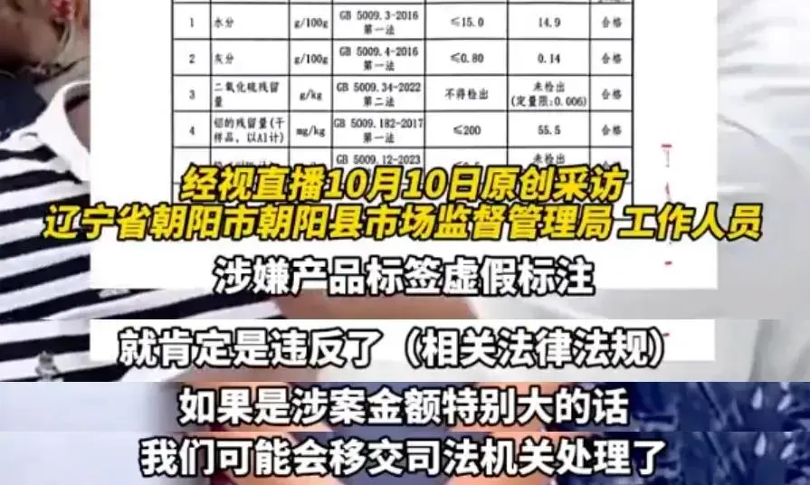 一開始是遼寧省朝陽縣相關部門工作人員,他們主要針對廠家開啓調查,明確表示東北雨姐直播間賣出的紅薯粉含有木薯澱粉,存在產品標籤虛假標註的情況,已經把廠家查處了。
