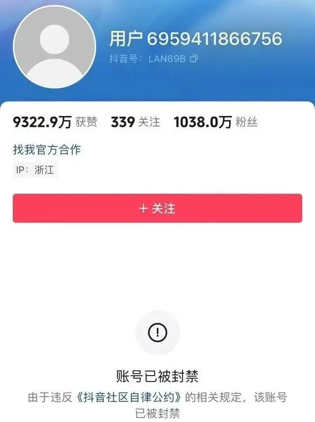 另外,因為曾連發幾十條股市相關作品,因為等帶有強引導性內容,千萬粉絲博主“大藍”已經被平台封號。