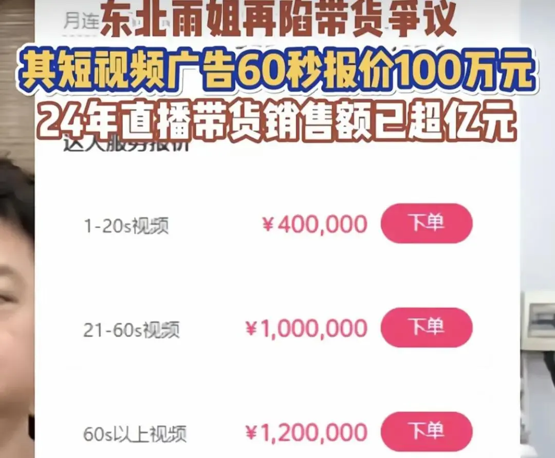 之前她帶貨紅薯粉條,在直播間信誓旦旦保證紅薯粉條用的是純正紅薯粉,並給出了假一賠萬的承諾。大概算一下,根據一晚上賣出8萬單,每單27.9元的價格,東北雨姐的總賠償金額要超過223億。