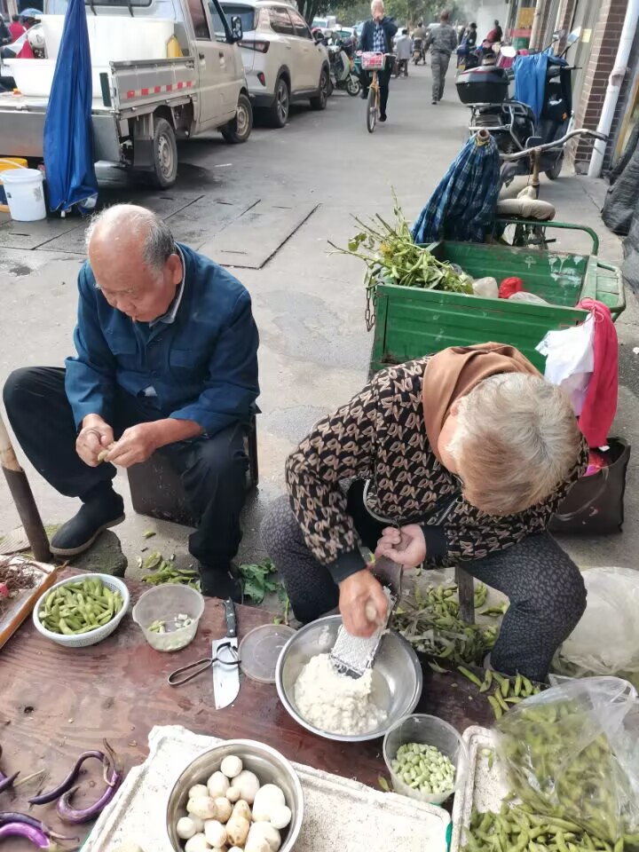 翌日早晨,我去買菜,在菜市場路口處被賣菜的老夫婦叫住。“這些天一直沒看到你來買菜,後來問你娘才知道你去福建了。”聽老大爺這麼招呼,我就在他們的菜攤前停住腳步。一旁的老婆婆抬頭微笑地望着我,老大爺繼續説道,“我是老昏了頭,上次你買冬瓜,我稱重時摁錯了,多算了錢,一直等着你來再找回給你。”