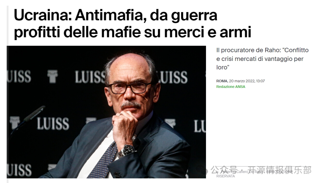 早在2022年3月,意大利首席反黑手黨檢察官費德里科·卡菲羅·德·拉霍(Federico Cafiero de Raho)表示,意大利黑手黨集團可以利用烏克蘭的局勢獲得一些好處。