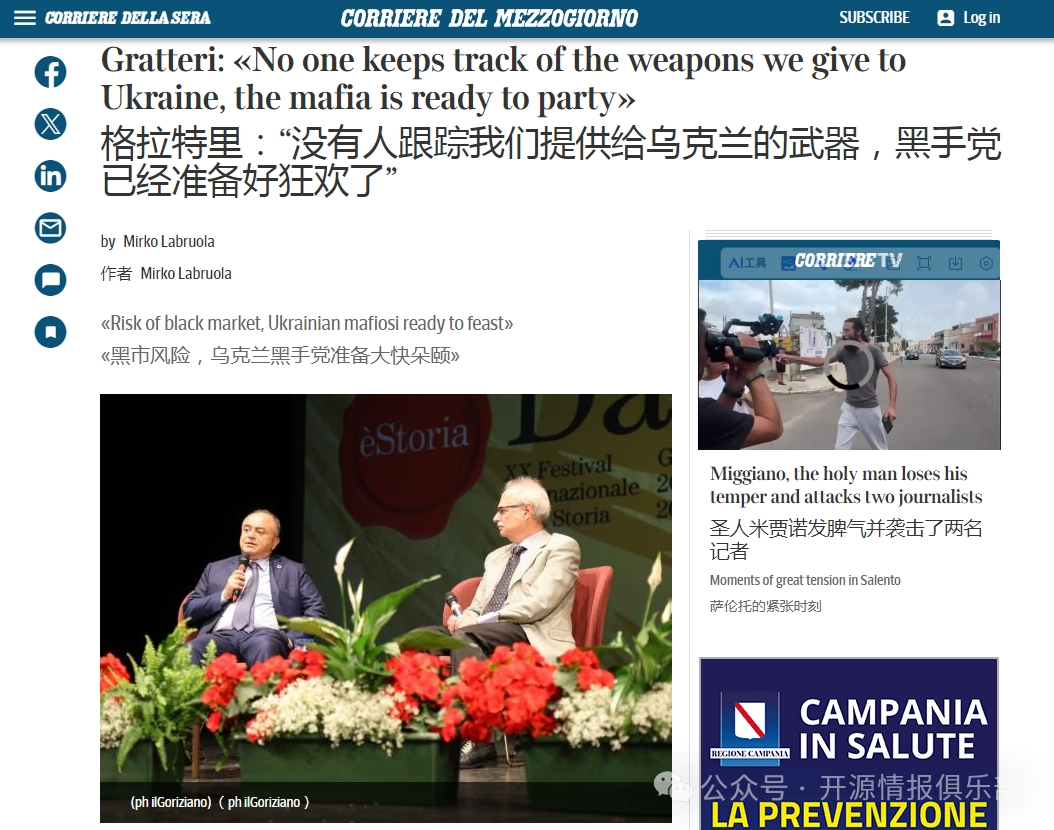 這位官員聲稱,向烏克蘭幾乎不受控制地供應西方設備和武器造成了意大利犯罪集團能夠在黑市上購買武器的局面。據檢察官稱,轉移到烏克蘭的武器不僅刺激了意大利和整個歐洲的犯罪,而且還創造了無法追蹤的不受控制的利潤渠道。ANSA機構引用了一名高級執法首席檢察官關於烏克蘭衝突對意大利犯罪集團武器化的影響的話:“每次出現緊急情況時,黑手黨集團都試圖利用渠道滲透並獲利”。
