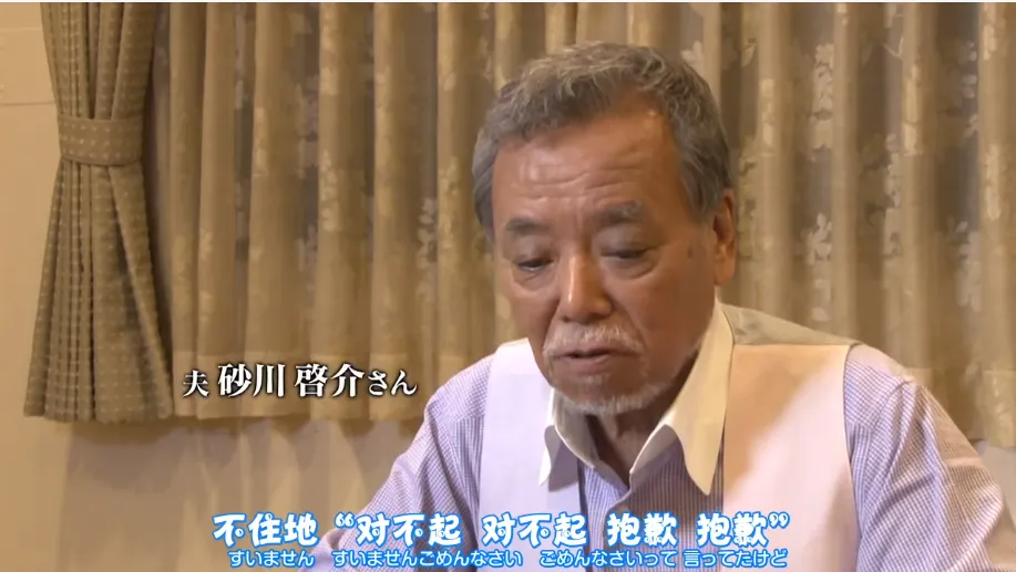 二人雖然沒有孩子,但二人卻相互攙扶走過了風風雨雨,據砂川啓介説,妻子雖然忘了很多,唯獨記得自己的名字,有時會把護士當成自己。砂川啓介在書中表示:
