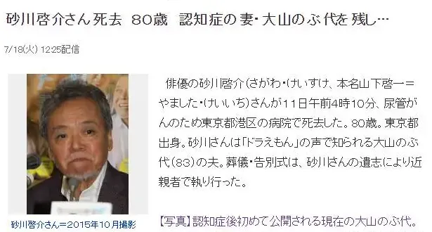 可麻繩專挑細處斷,砂川啓介被查出了尿道癌,雖然為了照顧妻子努力治療自己的癌症,但2017年7月11日,砂川啓介還是離開了這個世界,享年80歲。