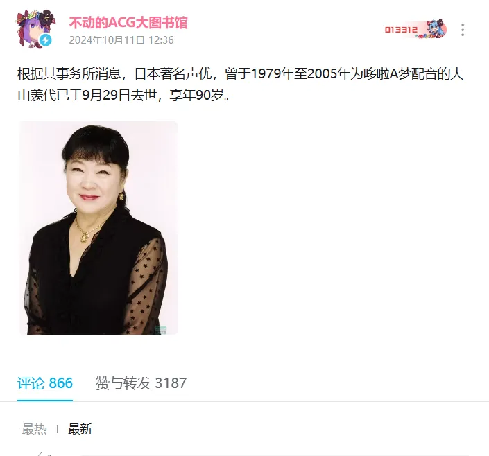 哆啦A夢聲優去世,沒有孩子的她,卻把全世界的人當做自己的孩子_風聞