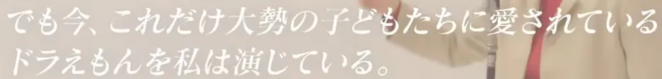 “啊……我雖然是一個沒能留住自己孩子的女人,不過現在這麼多孩子喜歡的哆啦A夢是我在配音,看這個動畫的孩子們就好像是我自己的孩子一樣,我想把這些孩子培養成好孩子。”