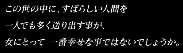 “為這個世界創造一個或更多優秀的人才,對一個女人來説不就是最幸福事情嗎?”