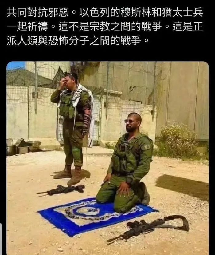 也有好多人拿這張老照片説事,認為以色列軍隊非常包容,有大量巴勒斯坦以及阿拉伯人的士兵。認為猶太士兵和阿拉伯士兵和諧相處,共同作戰。甚至有人説以色列軍隊中阿拉伯士兵比例超過20%。