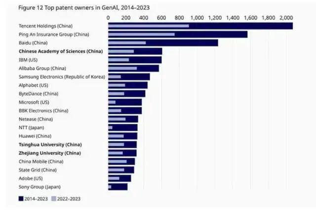 根據世界知識產權組織的報告,在過去十年,中國生成式AI專利申請量居全球第一,其中就有像騰訊一類被低估的存在,數量超過2000件,其AI大模型還在國際權威比賽上斬獲了兩項冠軍。
