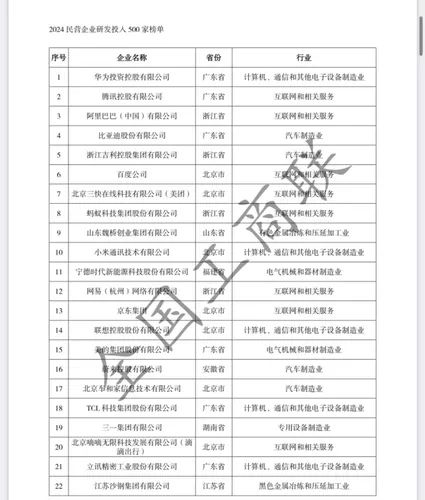 全國工商聯也公佈了民企研發投入的排行,可以看出,民營企業已經成為科技創新的重要主體。