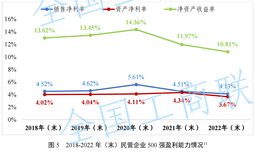 不過有點無奈的是,當前民企的整體盈利能力並不高,根據《民企500強報告》,2023年民企500強平均銷售淨利率只有4.04%。