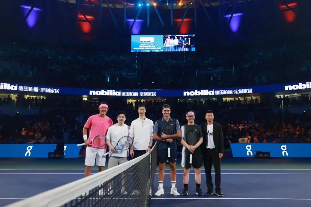 事實上,費德勒是對這片球場最為熟悉的球員之一,他曾8次參加上海大師賽,並於2014年和2017年兩次奪冠。而今年,是他自去年以來第二次以“超級摯友”的身份再度迴歸,並把退役後首次參加表演賽的契機留在了這裏。