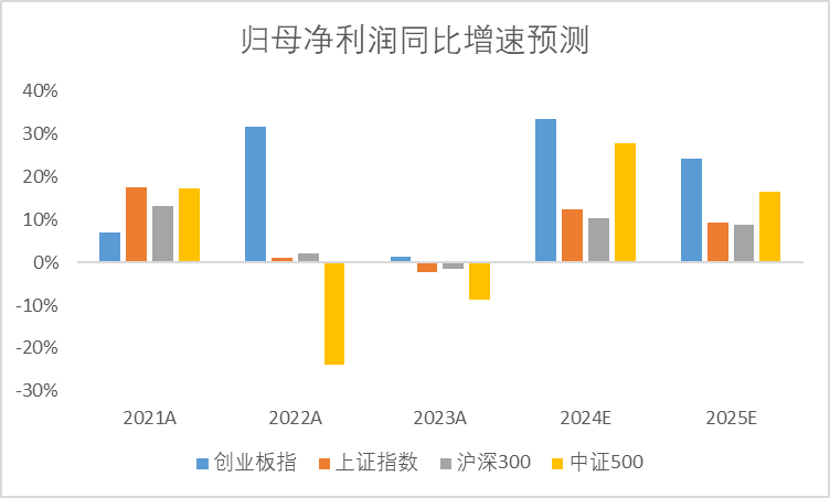 1、基本面紮實,盈利預期向好:從未來的一致預期淨利潤增速來看,創業板2024年歸母淨利潤有望達到25%的增速,相比其他主流寬基指數更優,反映出較好的基本面預期。