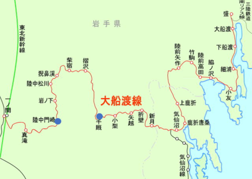 巖手縣的大船渡線受到議員影響,向北拐至摺沢。車站於1925年啓用