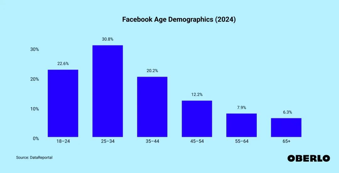 然而據 OBERLO 調查機構的數據顯示,Facebook 25 歲以上用户佔比達到 77.4%,其中 35 歲用户以上佔比達到 46.6%。對於大量出生在前互聯網時代,可能在中年才開始使用社交媒體和智能手機的中老年人來説,理解 AI 是什麼都費勁,更別提鑑別 AI 內容了。