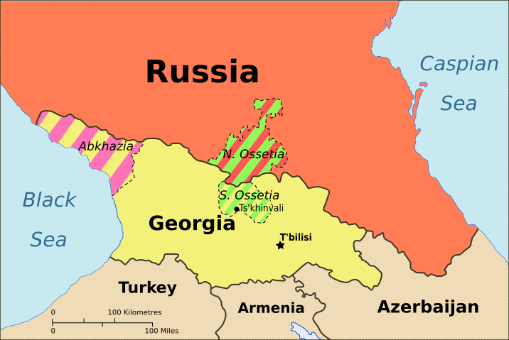10.與俄羅斯的領土紛爭:北部的Abkhazia(阿布哈茲)、South Ossetia(南奧塞梯)被俄羅斯控制,當年格魯吉亞是蘇聯加盟共和國,這兩個地方都是格魯吉亞共和國內部的共和國(類似於車臣共和國之於俄羅斯共和國),蘇聯解體後,格魯吉亞宣佈獨立,這兩個地方也宣佈要獨立於格魯吉亞。實際上這兩個共和國的人口、族裔、語言、宗教都是很獨立的:南奧塞梯説的是東伊朗語,信的是俄羅斯東正教,絕大多數奧塞梯族生活在俄羅斯聯邦裏的北奧塞梯共和國。這兩個共和國按説應該合在一起。也無怪乎南奧塞梯心繫俄羅斯;阿布哈茲説的是一種西北高加索語(和格魯吉亞語完全屬於不同的語系),自認為是一個獨立的民族,相對於格魯吉亞,在蘇聯時期的時候就高度自治,阿布哈茲族和格魯吉亞族一直都有民族矛盾。這兩個地方宣佈從蘇聯獨立甚至早於格魯吉亞,只是沒被承認,直到格魯吉亞宣佈從蘇聯獨立後,才一併脱離蘇聯。但實際上這兩個地方從來就沒打算和格魯吉亞在一起,也不認為自己從屬於格魯吉亞。但格魯吉亞又認為他們是格魯吉亞領土的一部分,對他們宣示主權。今天,這兩個地方都在俄羅斯的影響和庇護之下,也成為了格魯吉亞和俄羅斯的主要衝突點。之前我們看到説格魯吉亞有約7萬平方公里國土,其中也包括了阿布哈茲的8,000多平方公里以及南奧塞梯的約4,000平方公里(合計1.2萬平方公里)。2008年(北京北京奧運會期間),格魯吉亞與俄羅斯支持的南奧塞梯和阿布哈茲發生戰爭(俄格戰爭),彼時,格魯吉亞向南奧塞梯發動大規模進攻,俄羅斯為了保護南奧塞梯,對南奧塞梯出兵。格魯吉亞認為自己對南奧塞梯擁有主權,又視俄羅斯為入侵格魯吉亞領土。最終,以俄羅斯取勝,格魯吉亞撤軍、俄羅斯撤軍告終。這個情況很像現在的俄烏戰爭,區別只在於俄羅斯當時還無意吞併南奧塞梯。由於,南奧塞梯和阿布哈茲仍然屬於獨立狀態,並受俄羅斯的庇護和影響,因此格魯吉亞(及西方世界)話語均是俄羅斯“佔領”了格魯吉亞20%的領土。