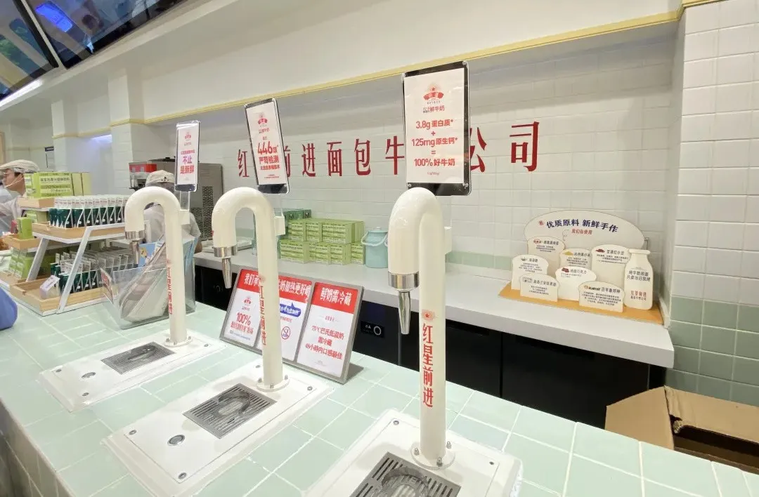 紅星前進麪包牛奶公司,則通過自助打奶裝置,讓消費者親自打奶,強化新鮮感和體驗感,吸引高頻消費。