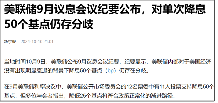 所以,就有報道稱,“美聯儲內部對於美國經濟沒有出現明顯衰退的背景下降息50個基點仍存在分歧。”