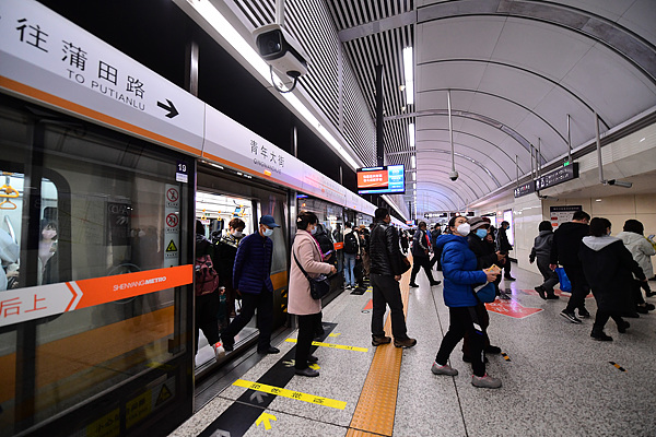 2022年11月1日,瀋陽市民乘坐地鐵出行。圖自視覺中國