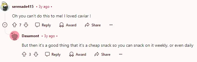 但是這不是好事嗎,便宜魚子醬你可以當每週零食,甚至是每天!