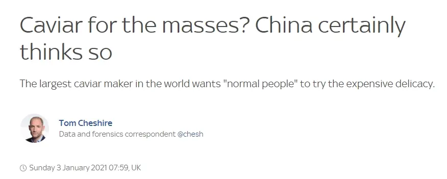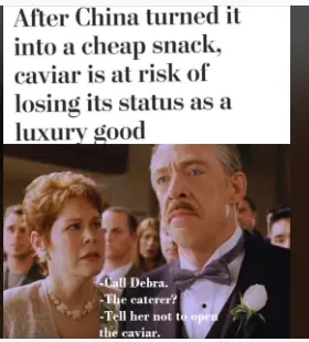 “中國將魚子醬變為便宜零食,魚子醬面臨失去奢侈品地位的風險!”